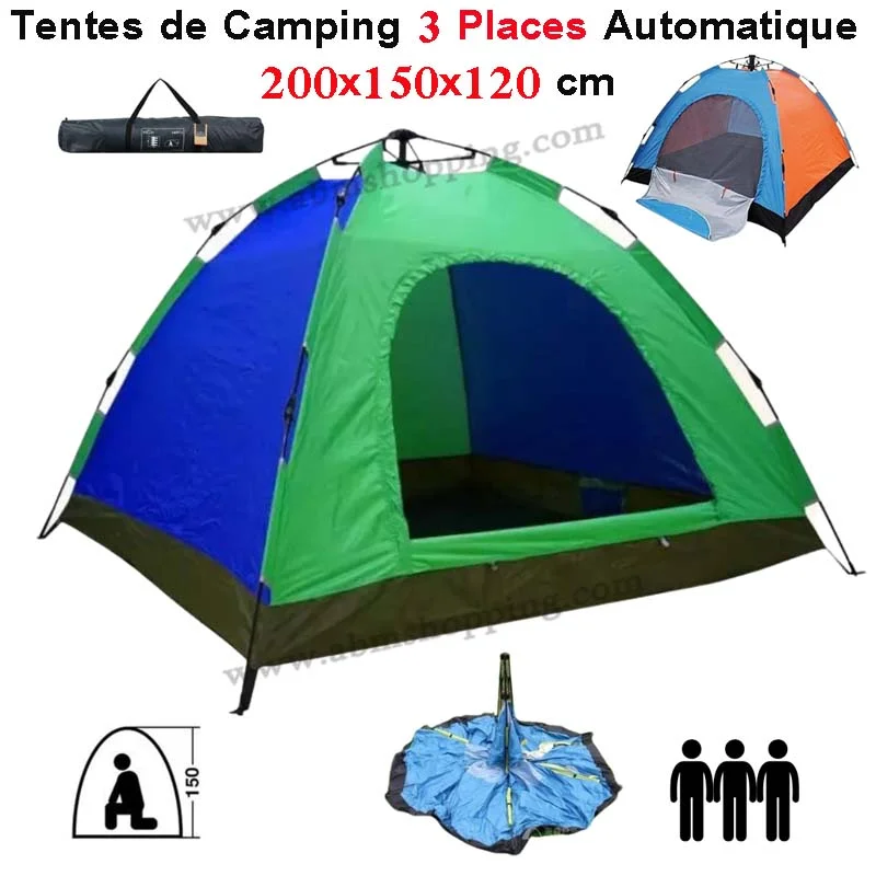 Tentes de Camping 3 Places Automatique 200x150x120 cm
