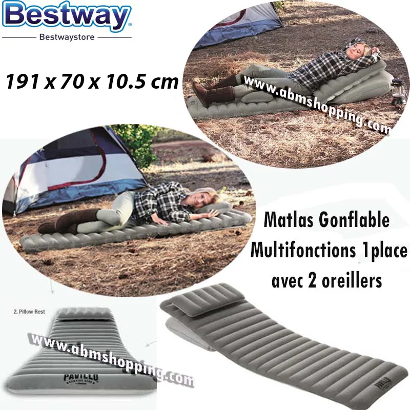 Matelas Gonflable Multifonction 1 Place Avec 2 Oreillers 191×70×10.5 cm – Bestway