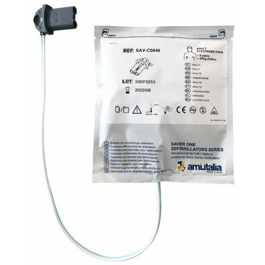 Les électrodes Saver One pour adultes sont des électrodes qui sont conçues pour le Défibrillateur Semi Automatique Saver One et le Défibrillateur Automatique Saver One, les électrodes sont pré-connectées (câble de connexion se trouve à l’extérieur).
