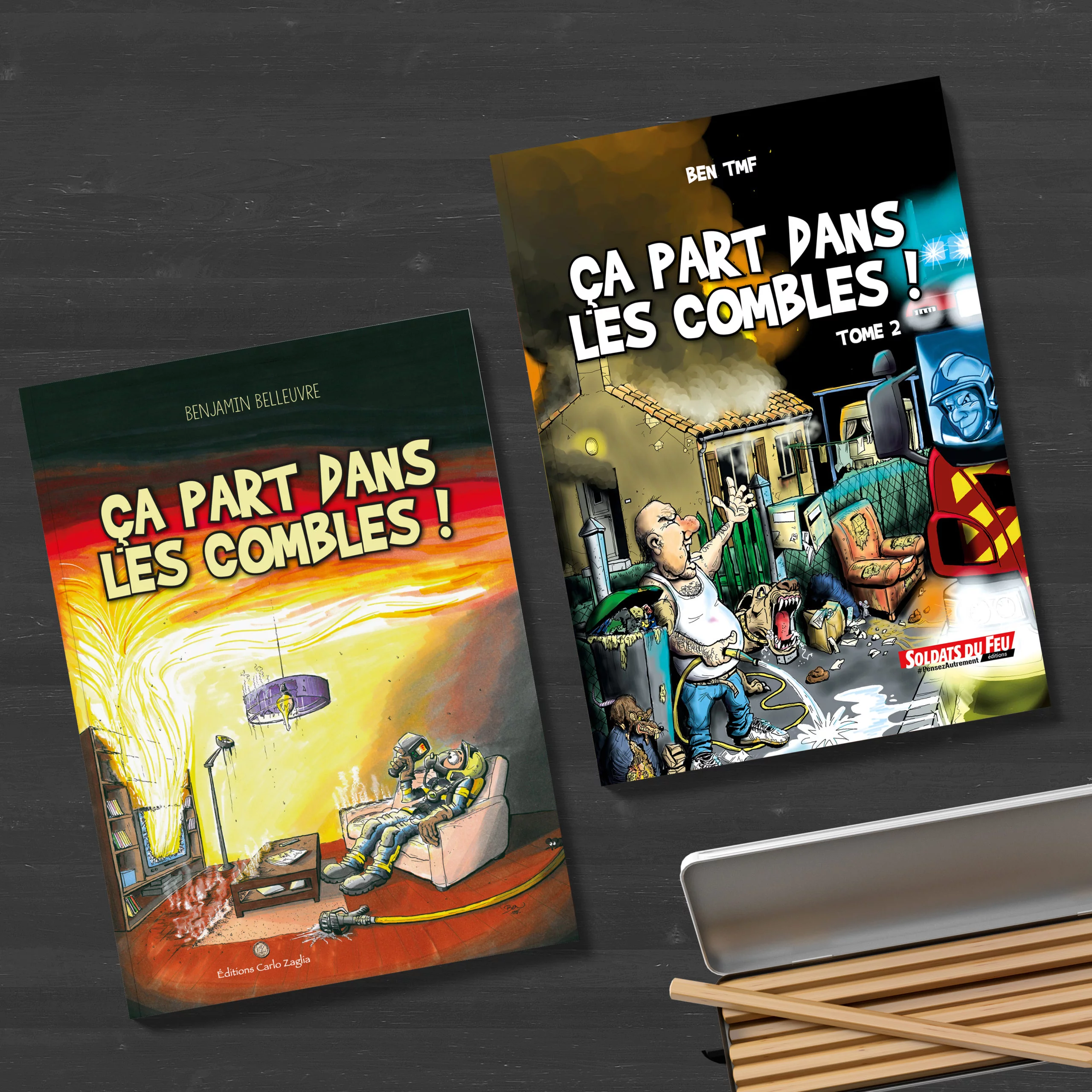 Profitez du pack spécial « ça part dans les combles ! » dans lequel vous retrouverez les deux tomes écrits et illustrés par Ben TMF. Du jeune piaf au vieux chibani, en passant par les sapeuses-pompières et les officiers, les différentes situations et débats que l’on peut vivre en caserne et sur intervention se retrouvent dans ces recueils de dessins de l’auteur Ben TMF. Avec un regard critique et qui suscite la réflexion, certaines scènes caricaturées peuvent avoir comme un air de déjà vu pour les pompiers actifs et à la retraite.