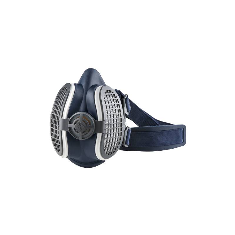 Masque pourvu de deux filtres interchangeables. Masque à profil compact et fabriqué avec des matériaux