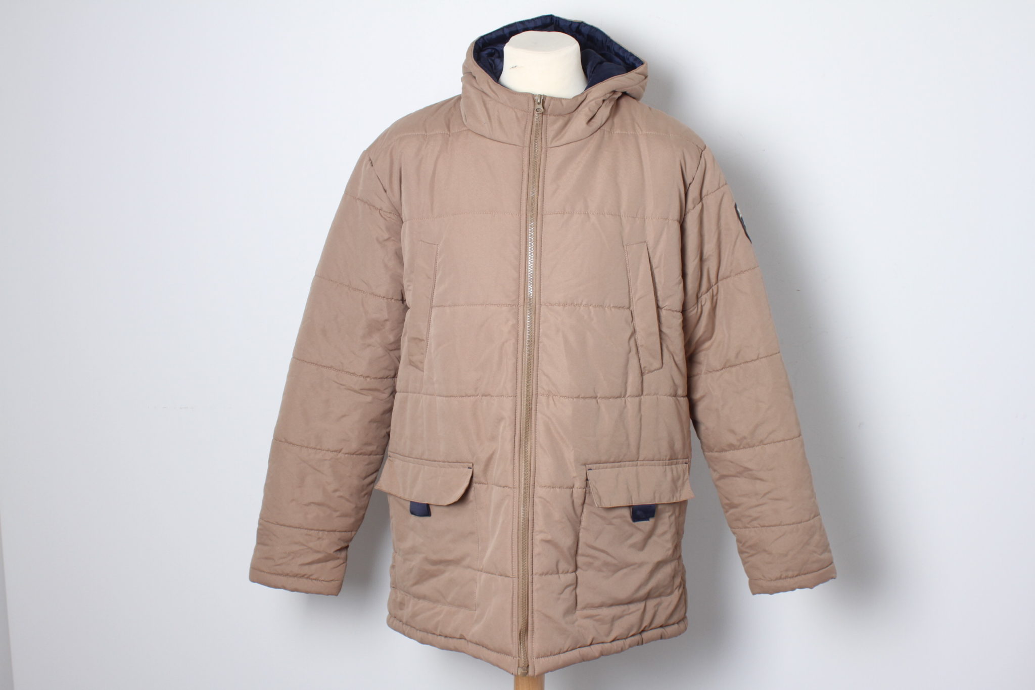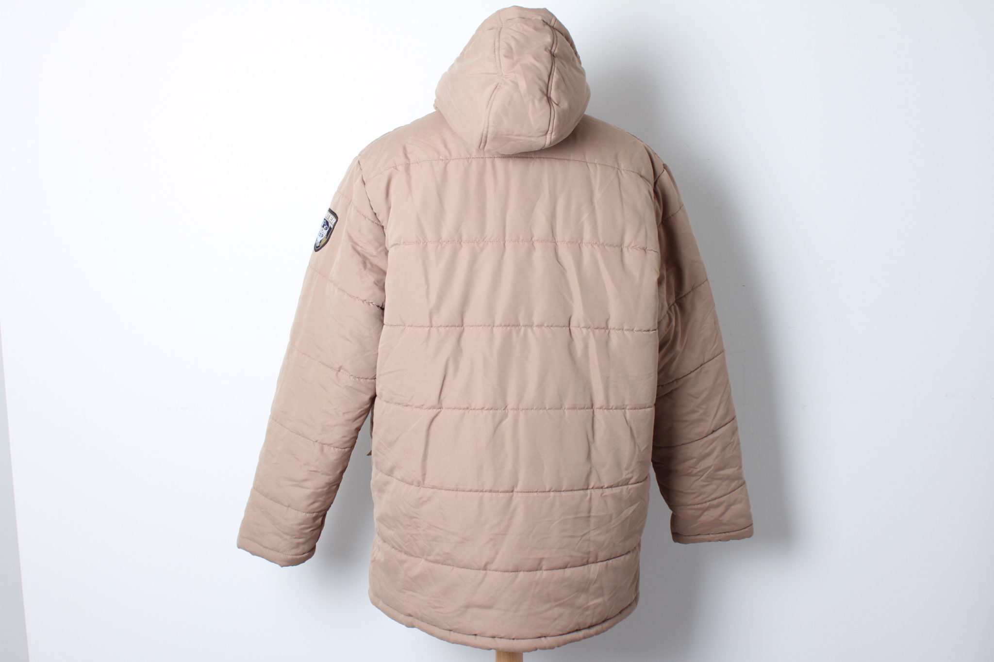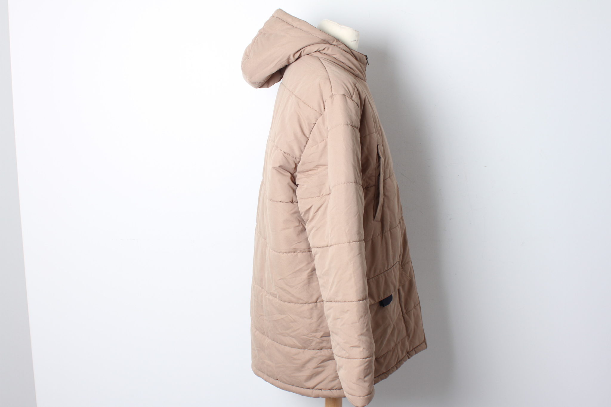 Fermeture éclaire , liens de serrage à la base, capuche.