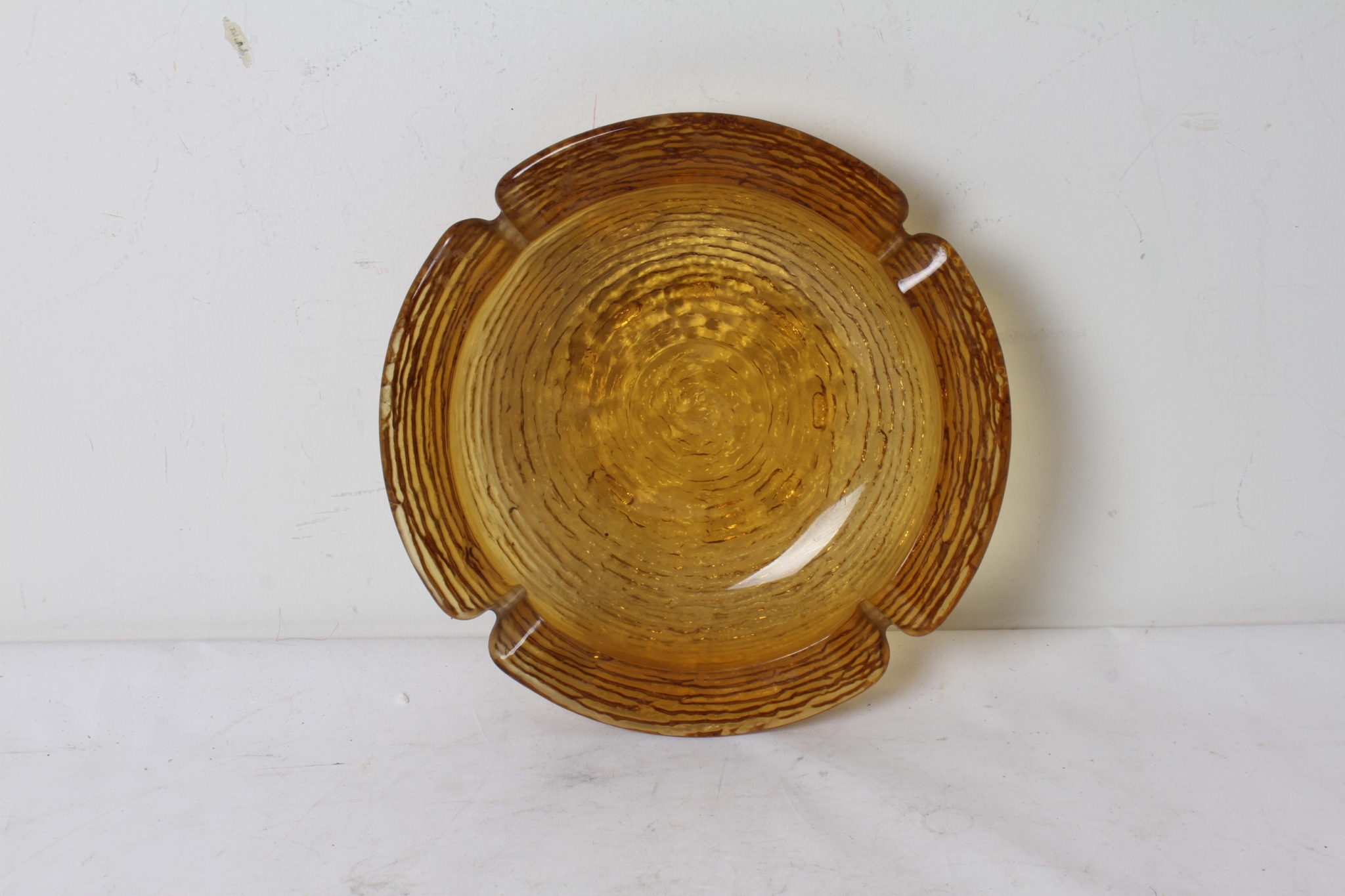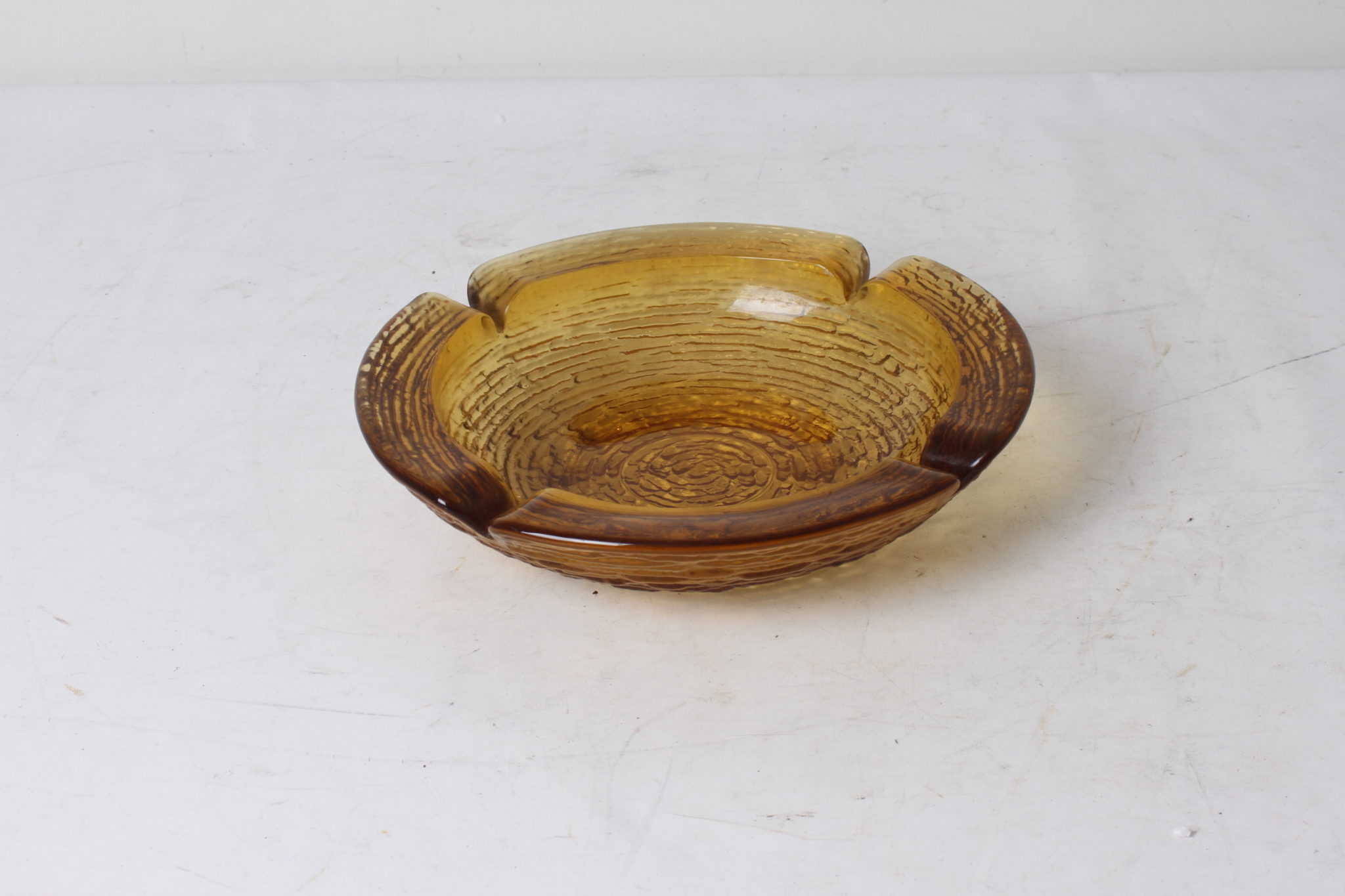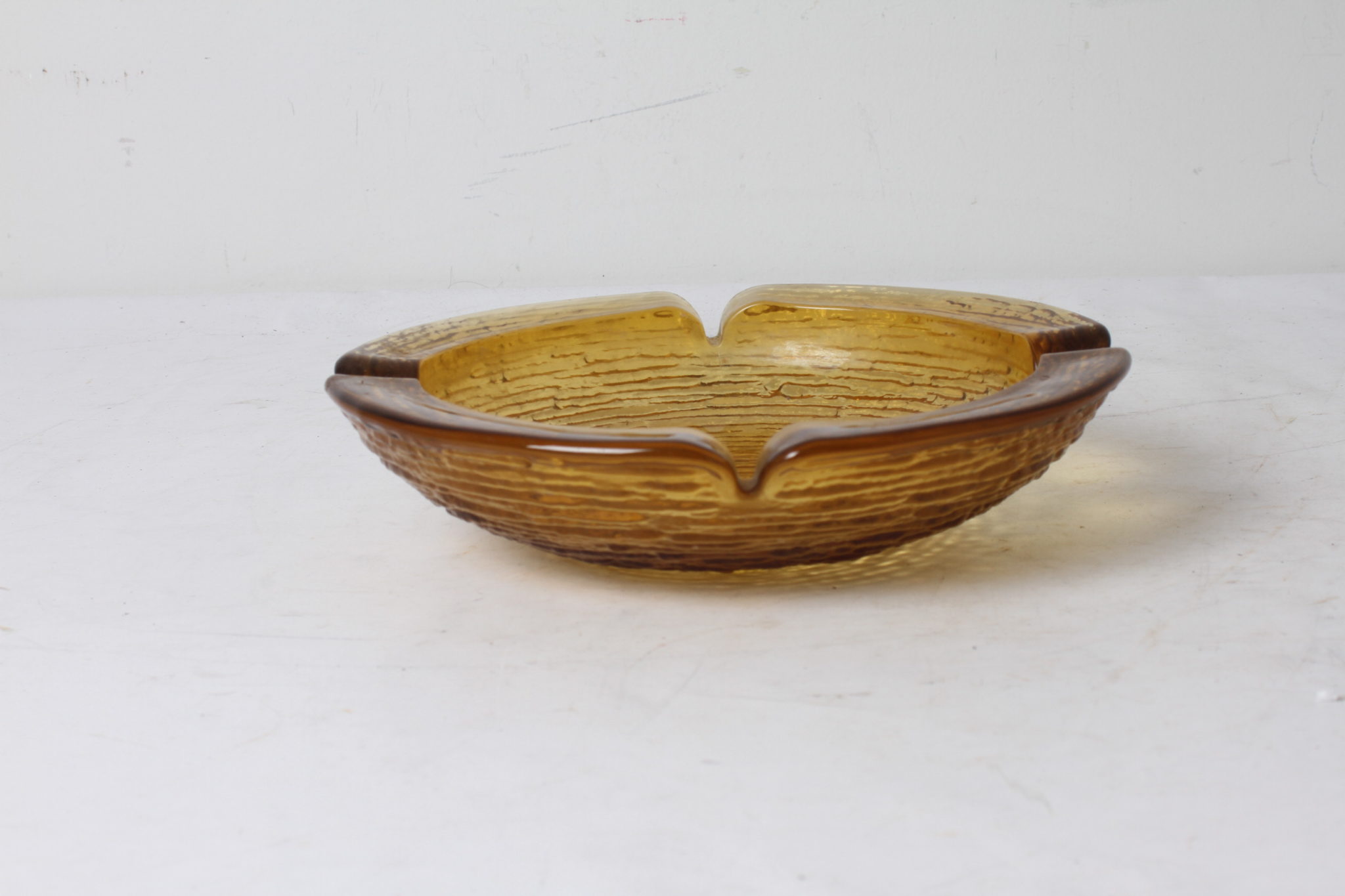 Cendrier en verre ambré texturé Vintage,design de Anchor Hocking, fabriqué au Etats Unis.