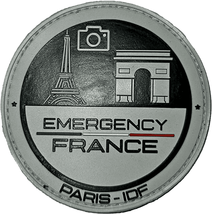 Ecusson PVC Emergency France – Paris IDF, rond 8cm, fixation velcro.