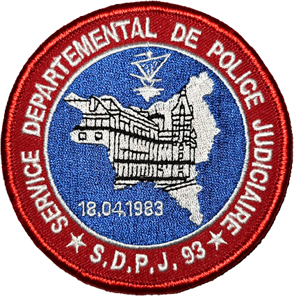 Ecusson SDPJ 93, brodé, rond 8cm, fixation velcro.