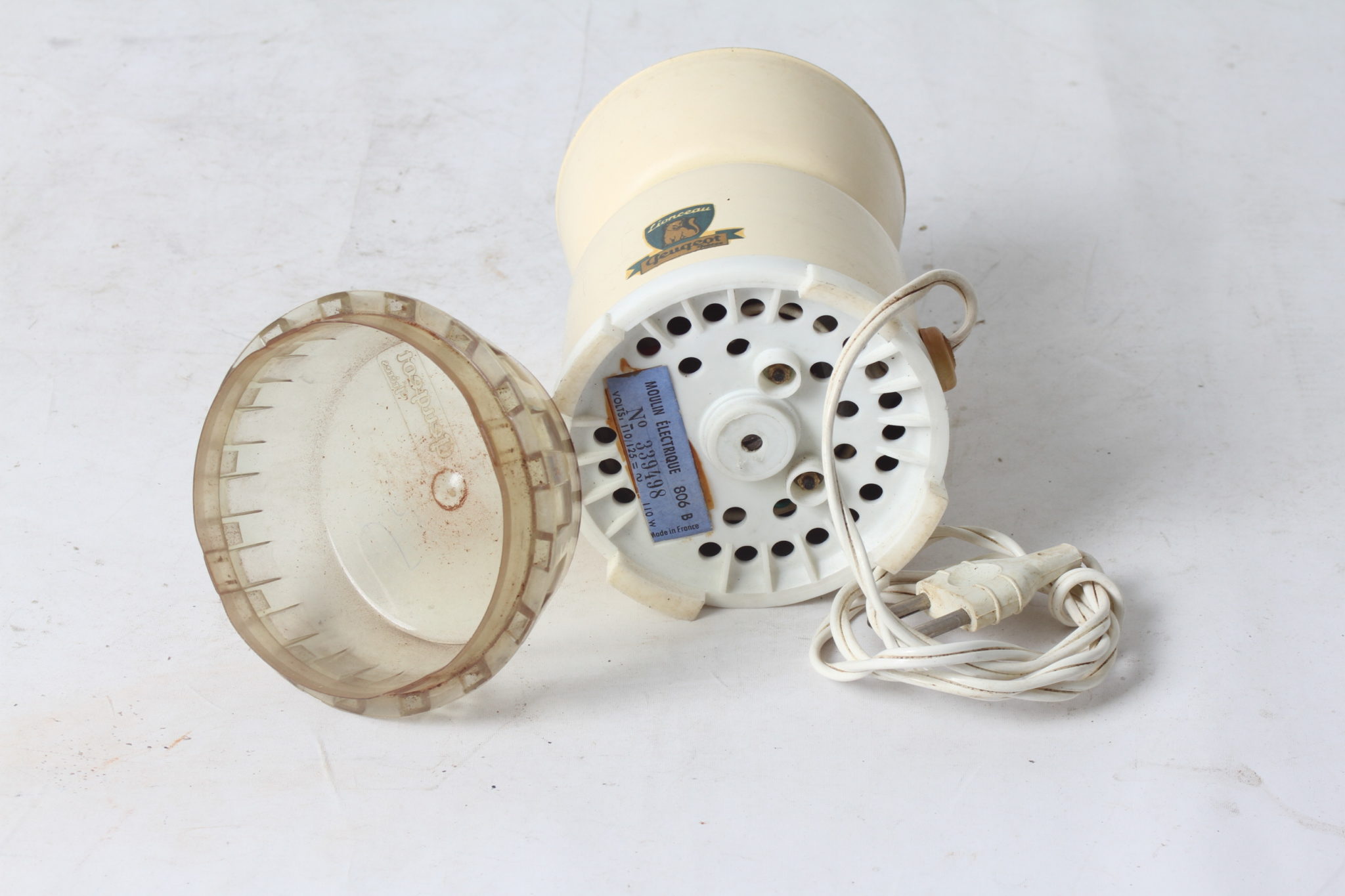 Ancien moulin à café électrique de la marque Peugeot Frères, modèle Lionceau, 806 B.