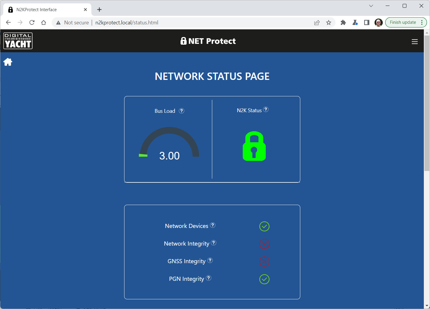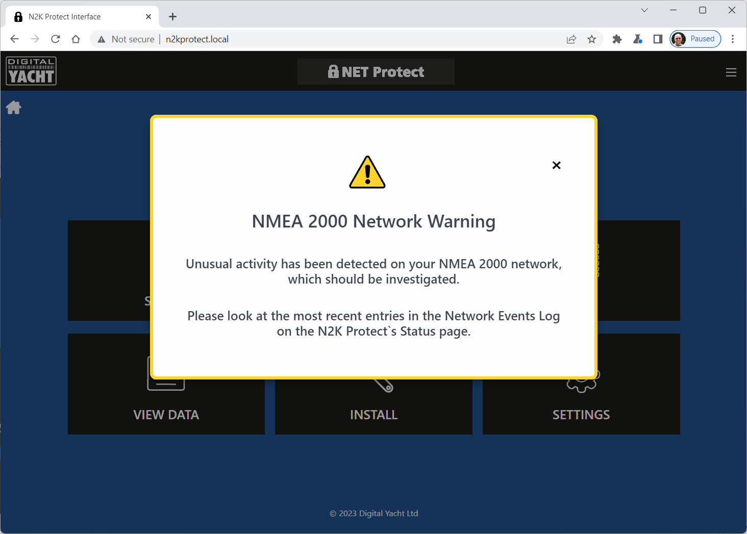 Ensuite, NET Protect passe en mode de surveillance 24/7, émet des alertes sonores et enregistre ces alertes en vue d’une analyse ultérieure. Lorsqu’il est connecté à un 4G Xtream ou 5G Xtream de Digital Yacht, des alertes SMS optionnelles peuvent être activées pour une surveillance à distance.